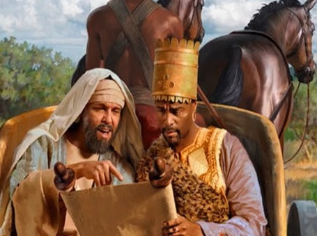 Zo was er bijvoorbeeld een rijke man uit Ethiopië, die het boek van Jesaja aan het lezen was. Hij was in Jeruzalem geweest en hij was op weg naar huis, naar Ethiopië. Hij reisde door Gaza. Jezus was toen al naar de hemel gegaan. Het verhaal van deze Ethiopiër staat ook in de Bijbel. Hij zat in zijn wagen en las hardop wat in het boek van Jesaja stond. Er liep daar ook een christen. Hij heette Filippus. Filippus hoorde de Ethiopiër lezen en herkende de woorden van Jesaja. Filippus vroeg aan de Ethiopiër: Begrijpt u wat u leest? Ethiopiër zei: Nee, wilt u het uitleggen? Kom alstublieft naast me zitten. Filippus ging naast hem zitten. De Ethiopiër las het volgende: